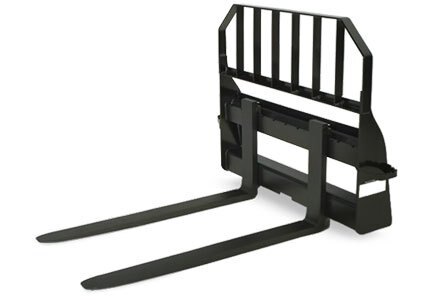 Pin-style allows the forks to "float" with the contour of the ground and features an unlimited number of tine positions, a single-piece backrest, and unrestricted visibility to the fork tips.