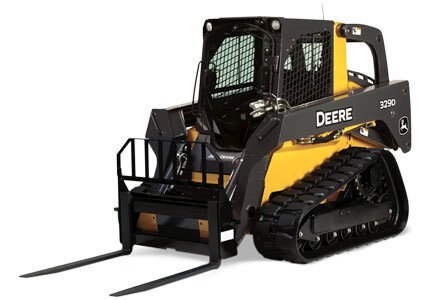 John Deere offers standard and heavy-duty pallet forks. Both styles offer a step on each side of the pallet fork frame for easy entry into and exit from the skid steer.