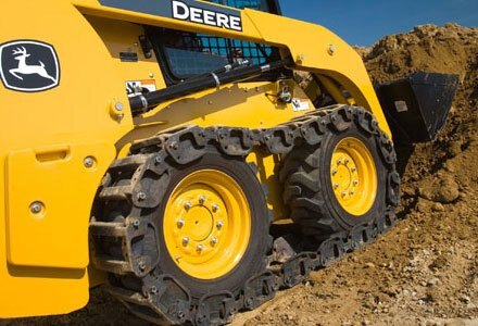 Steel Tracks Don't let the weather dampen your plans. Equip you Skid Steer with steel tracks and don't let the rain keep you from the swift completion of your duties. Their self-cleaning design reduces ground pressure and helps improve traction and flotation in soft, muddy, or loose conditions. Smoothes the ride on rough surfaces, too.