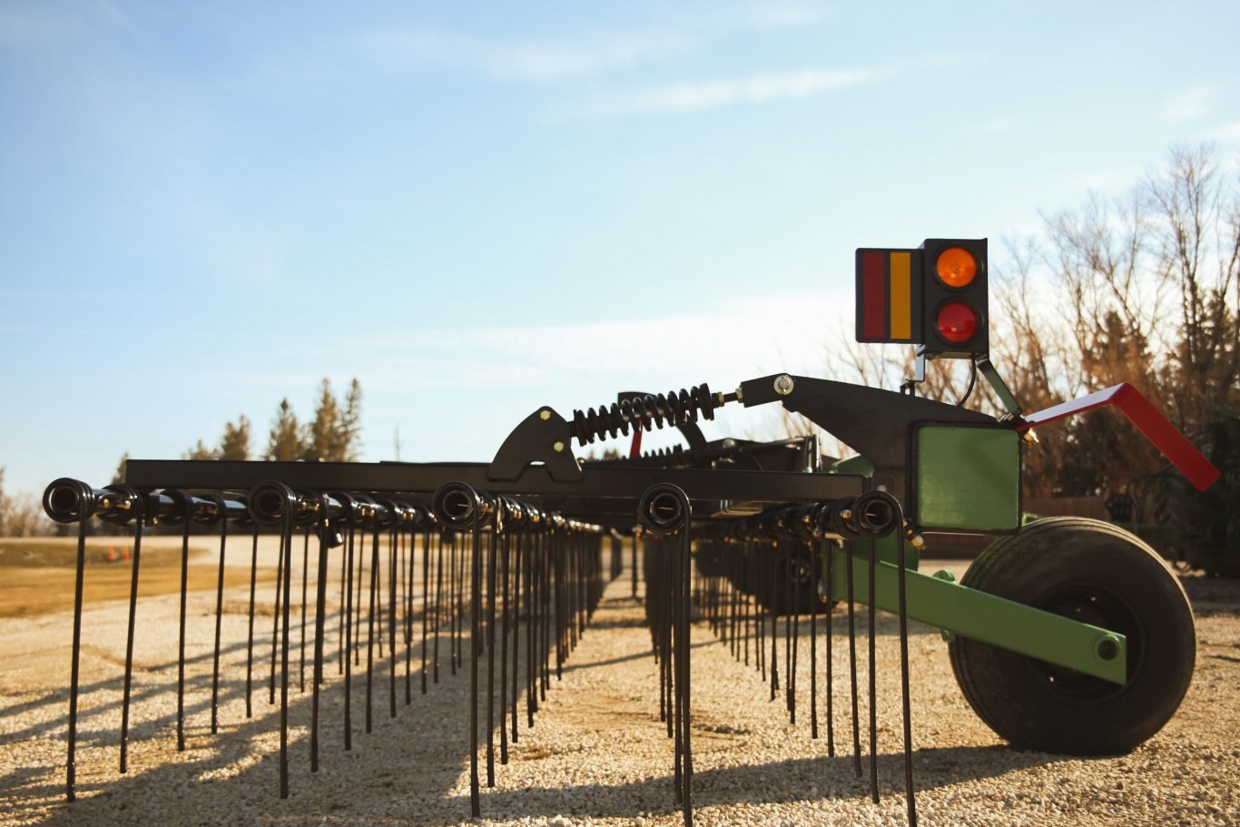 The Mandako Field Sergeant features a patent-pending positive hitch weight design, ensuring the hitch remains stable and secure during transport. This design prevents the hitch from lifting, a common safety concern with conventional harrows. Additionally, with over 1200 lbs of positive weight on the hitch, it significantly reduces the risk of accidents or instability on the road, making it a safer option for farmers moving between fields.