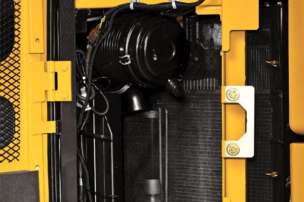 • Large, easy-to-open service doors provide ample access to dipsticks, sight gauges, and spin-on vertical engine and hydraulic filters for simplified daily and periodic servicing.