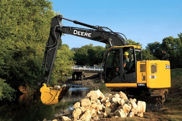 ARM AND BOOM - A John Deere exclusive, three welded bulkheads within the boom resist torsional stress for unsurpassed durability. Booms, arms, and mainframes are so tough, they're warranted for three years or 10,000 hours.