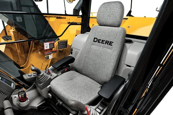 CAB COMFORT - We've got your back with a sculpted mechanical-suspension high-back seat. Seat has 318 mm (12 in.) of travel, sliding together or independent of the joystick console. So it won't cramp an operator's style. For even more support and comfort, opt for the air-suspension heated seat.