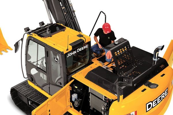 • Swing open the side panels and you'll discover many of the numerous ways this excavator can minimize maintenance, increase uptime, and reduce daily operating costs.