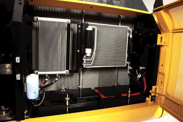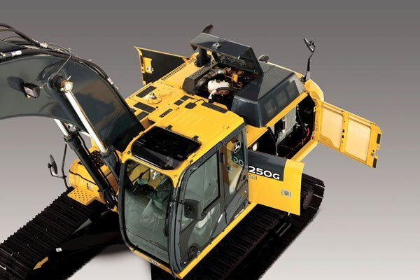 - Reinforced resin thrust plates, grooved bushings, and thermal-coated bucket joints increase arm and boom lube intervals for 500 hours.