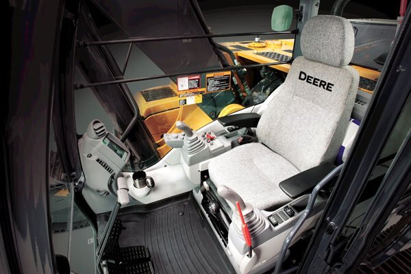 - Spacious cab is comfortable and noticeably quiet. Silicone-filled mounts effectively isolate operators from noise and vibration.