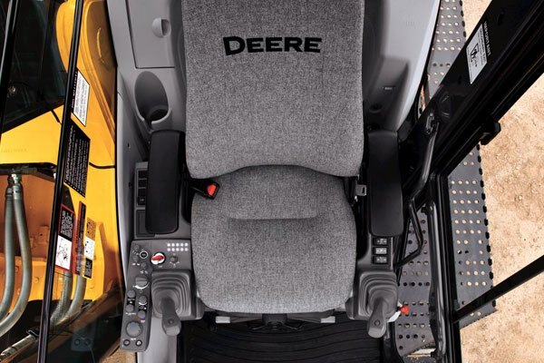 - Standard equipment includes a multi-position air-suspensoin heated seat. With 267 mm of travel, sliding together or independent of the joystick console, there's plenty of legroom so it won't cramp an operator's style.