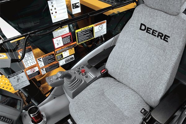 CAB COMFORT - We've got your back with a sculpted mechanical-suspension high-back seat. Seat has 318 mm (12 in.) of travel, sliding together or independent of the joystick console. So it won't cramp an operator's style. For even more support and comfort, opt for the air-suspension heated seat.
