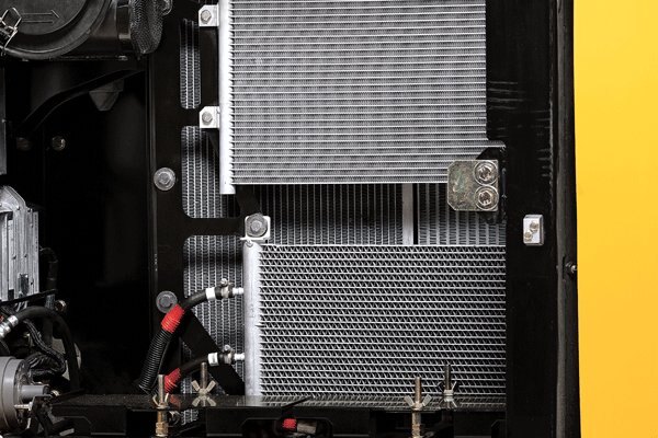 - Highly efficient, heavy-duty cooling system keeps things cool, even in tough environments or high altitudes. The cooling system consists of five coolers located in the left service compartment. They are the hydraulic, fuel, engine coolant, charge air and air conditioning.