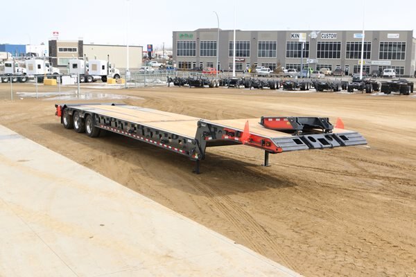 Knife-edge gooseneck profile makes it easy to load low ground-clearance vehicles over the front onto the trailer in the high boy configuration.