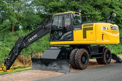 The wheel deal. Looking to get on a roll? The 190G W Wheeled Excavator travels on tires, so it's more mobile and maneuverable than tracked...