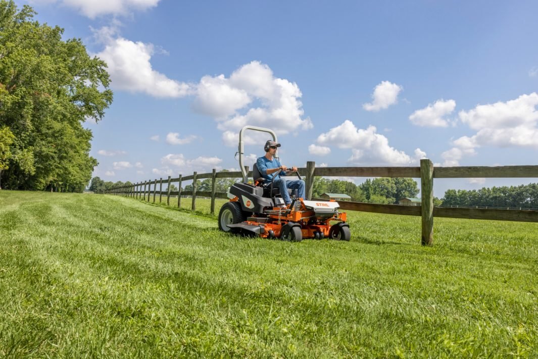 With an advanced suspension system and a commercial-grade 60” mowing deck, the STIHL RZ 560 K zero-turn mower is built for durability, operator comfort, and a long life span. The two-belt deck pulley system reduces stress on each belt to keep the 24 hp Kawasaki engine running cooler with less maintenance. The Hydro-Gear® ZT-3400 transaxles enable 10 mph forward ground speed and 5 mph in reverse, allowing for smooth and efficient cutting.